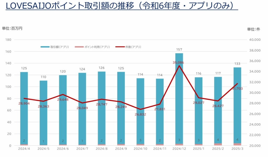現在のユーザー数は約46,000、取扱店は280店以上となり、ユーザーによる取引額は月平均1.2億円と、地域経済の活性化に貢献しております(2025年3月末現在)。