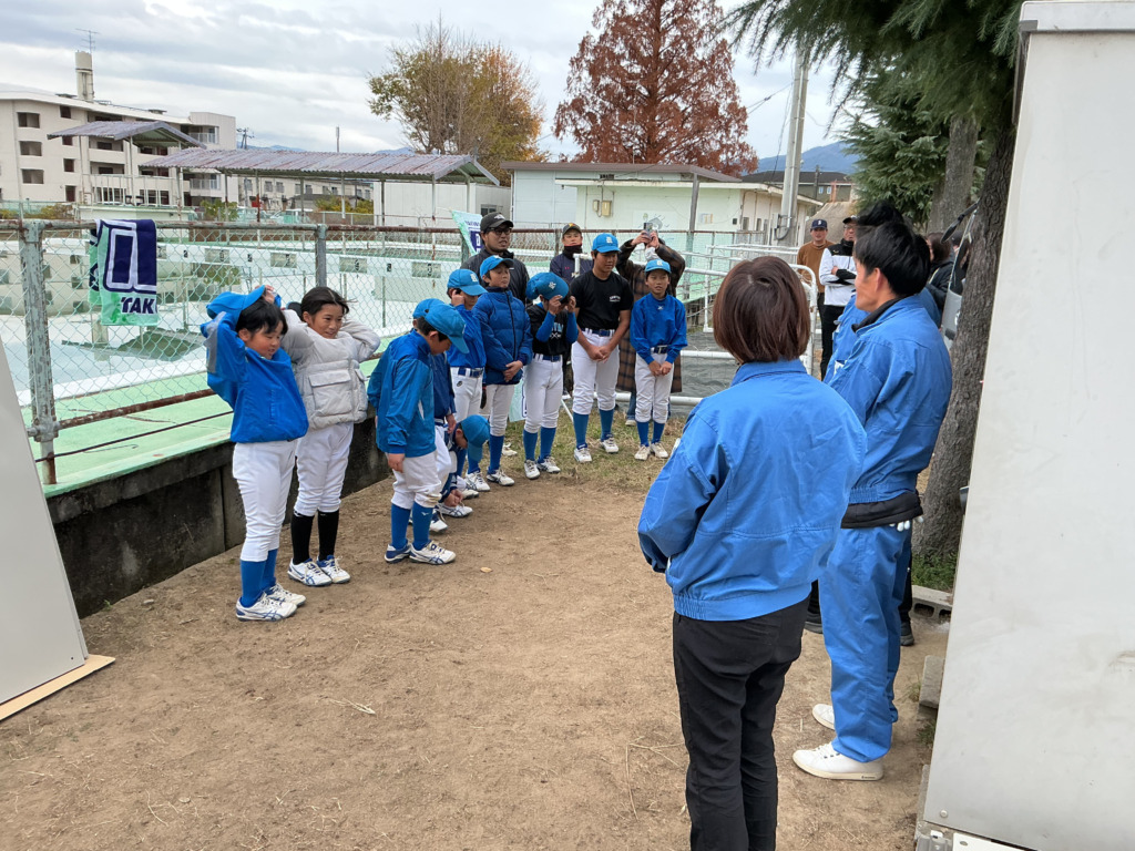 田窪工業所の日野大治郎執行役員から国安ソフトボールスポーツ少年団の長井良太代表へ鍵の贈呈が行われ、団体代表者からは感謝の言葉とともに、今後の活動への意気込みが語られました。