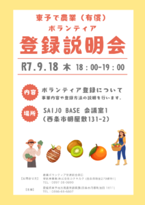 「東予で農業ボランティア (有償)」 登録説明会のお知らせ