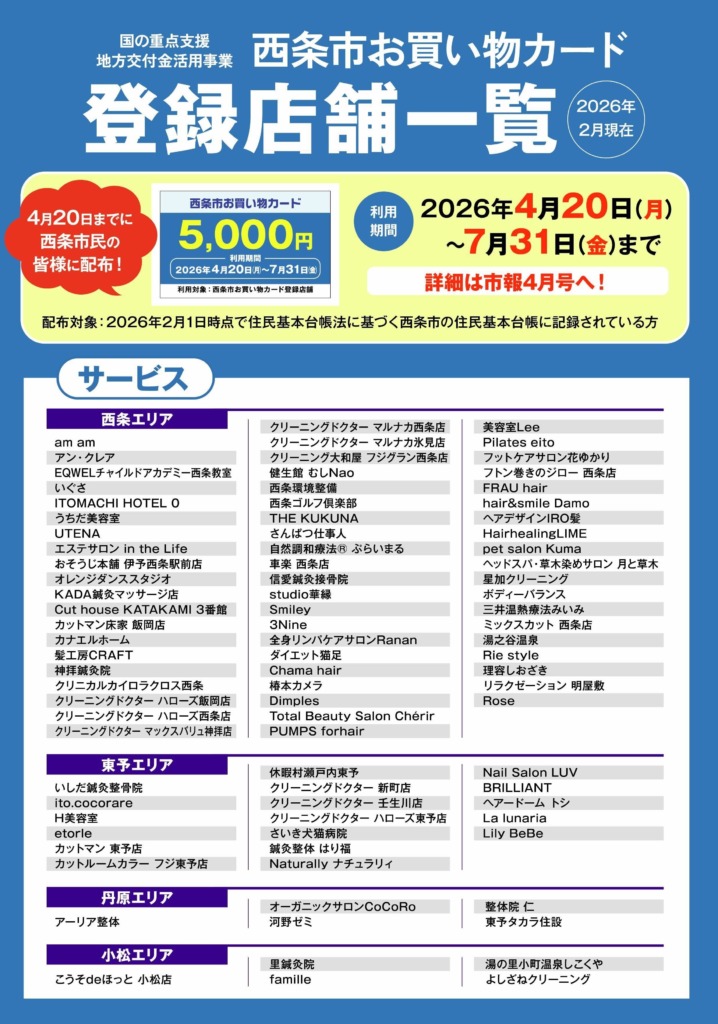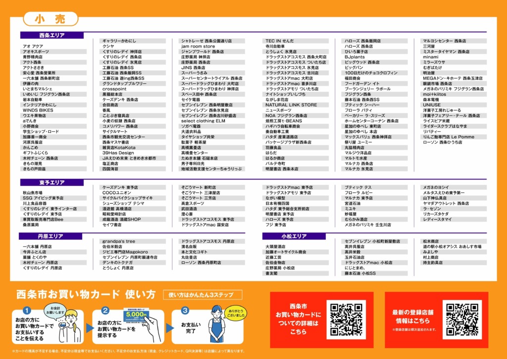 西条市お買い物カード ご利用可能店舗